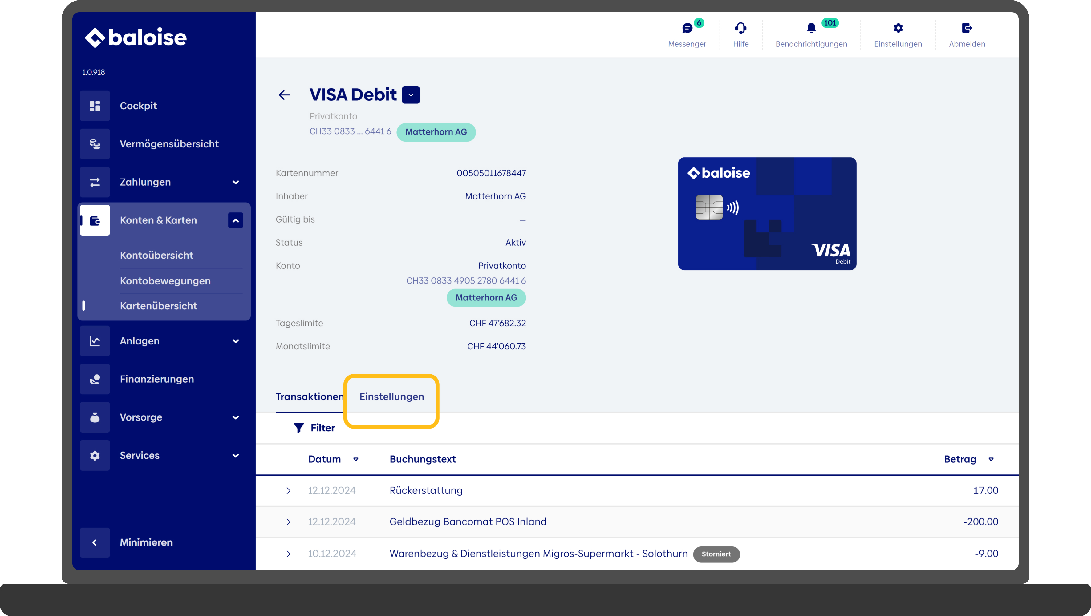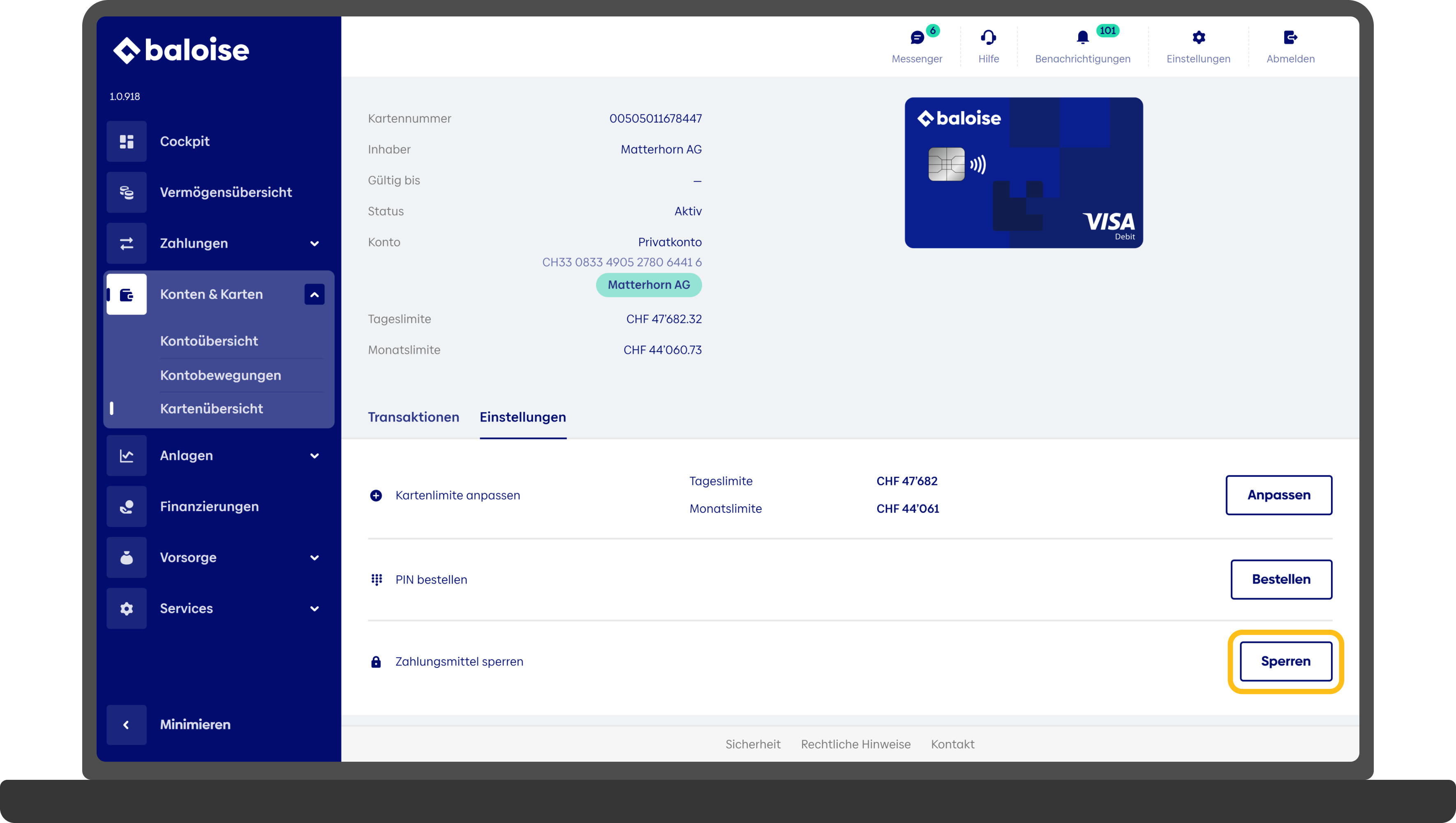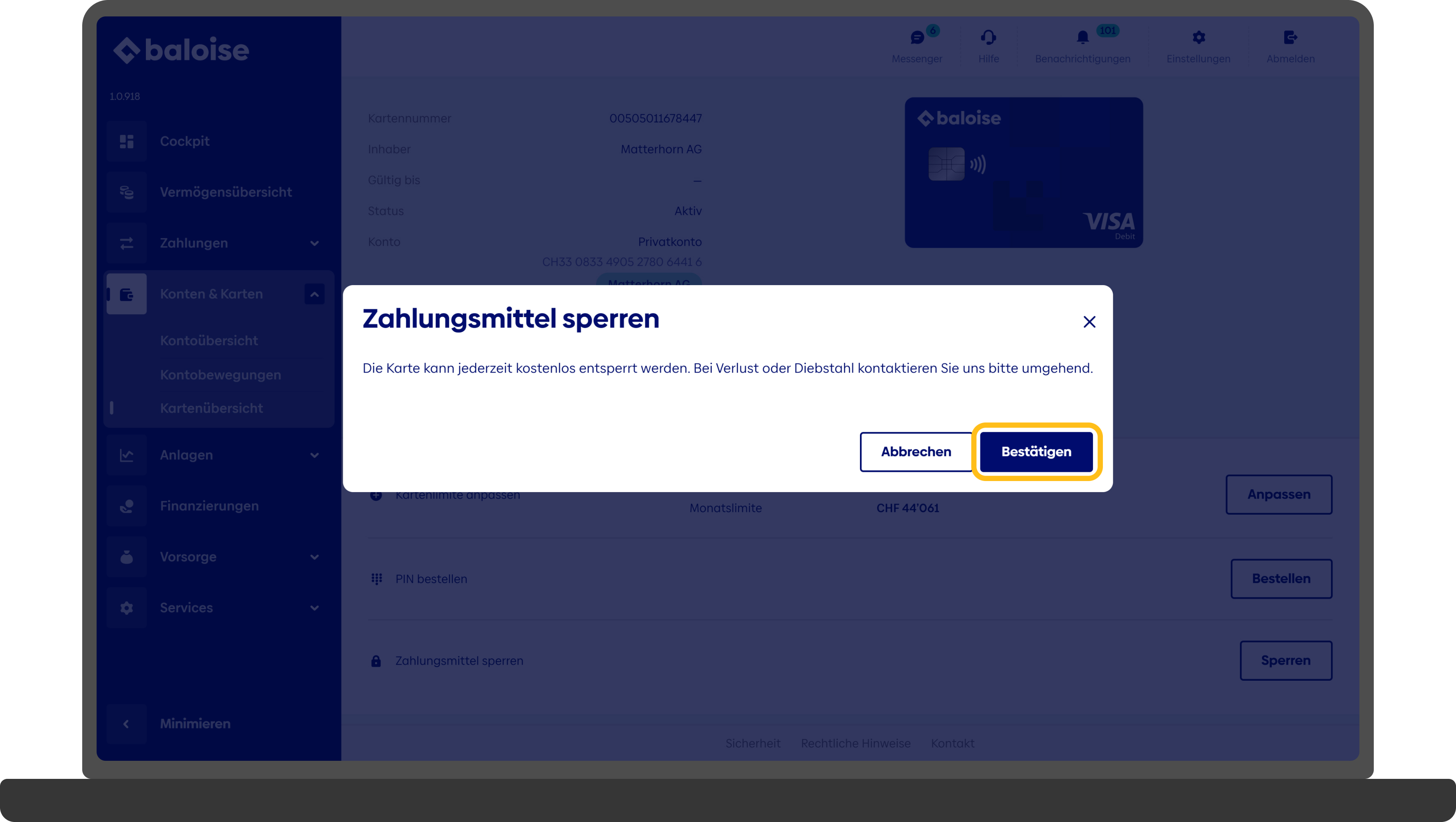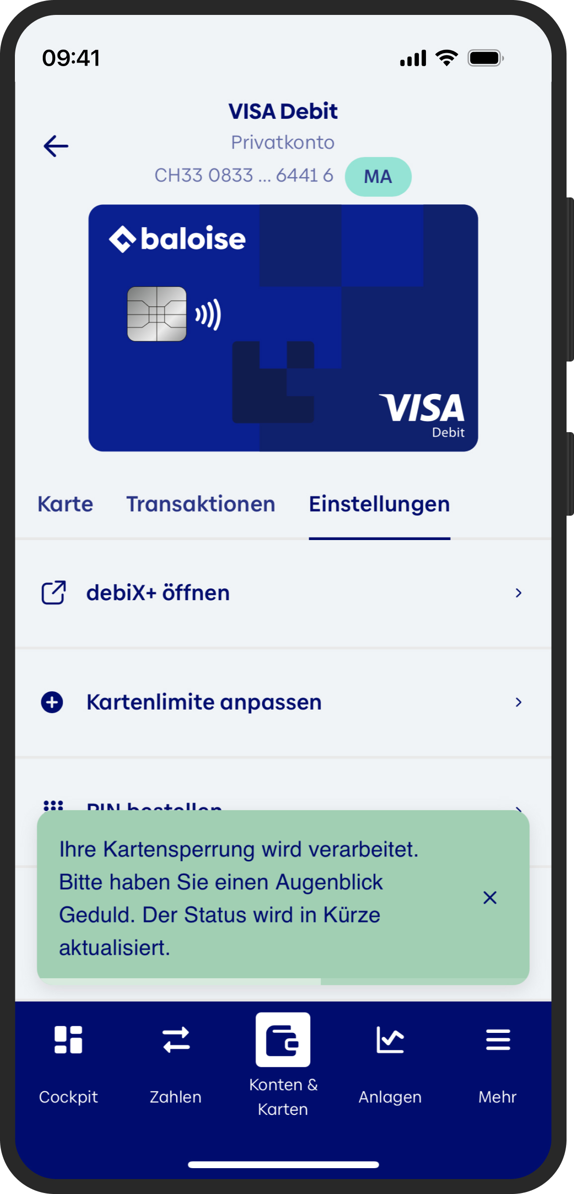Kurz URL – www.baloise.ch/hilfe-debitkarte-sperren