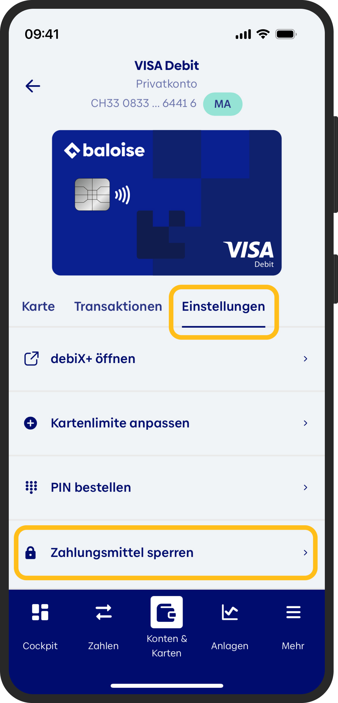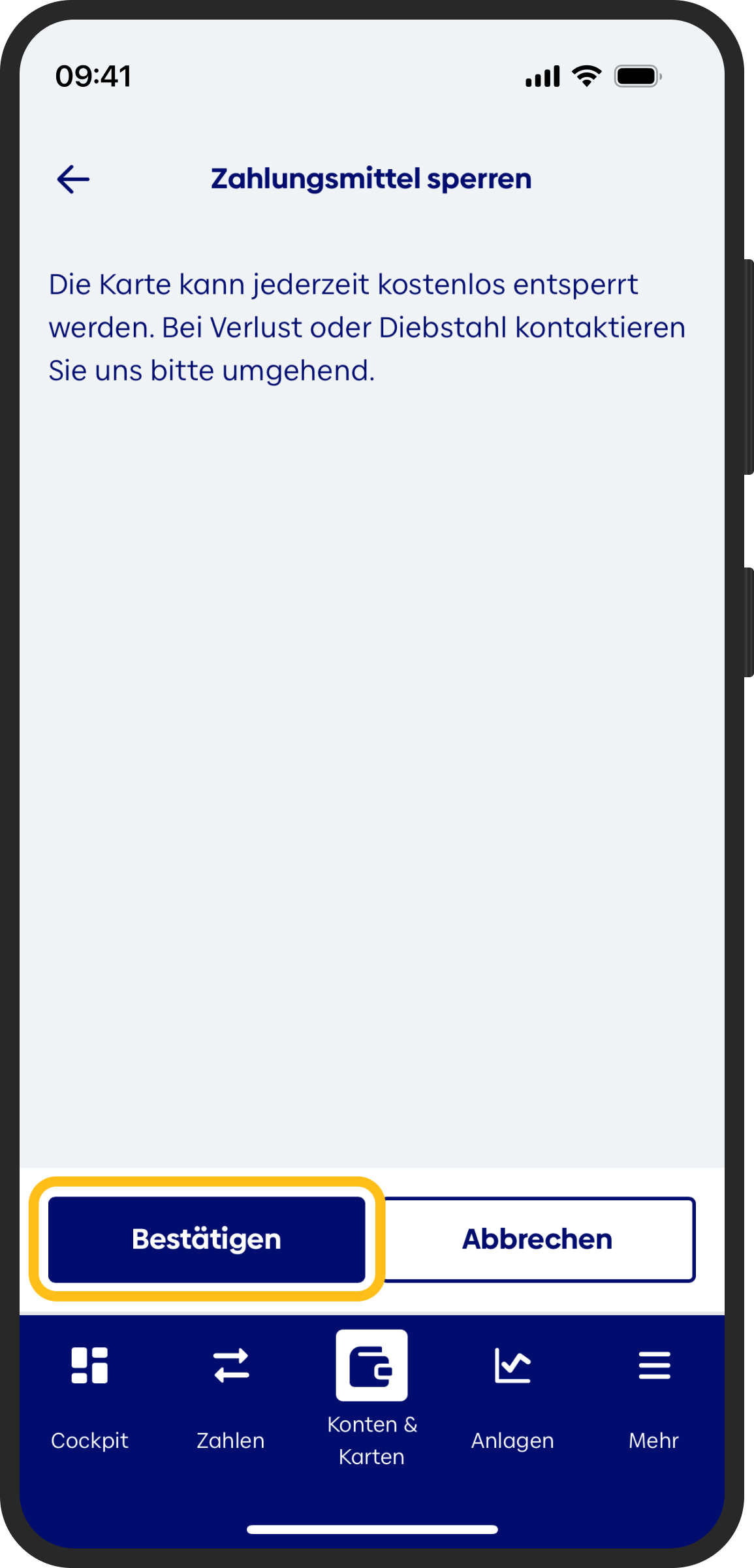 - Wählen Sie Karte sperren und folgen Sie den Anweisungen.