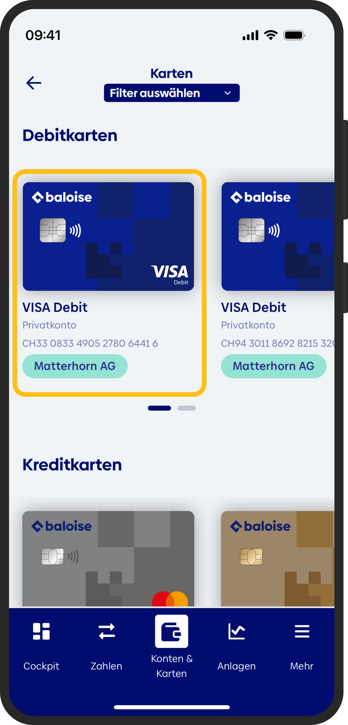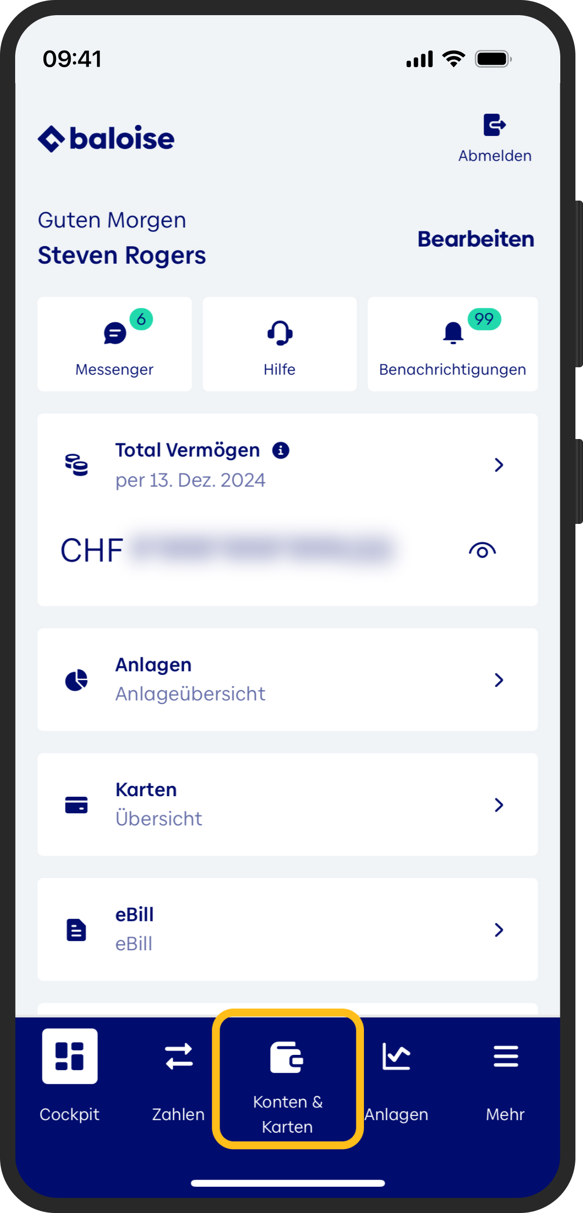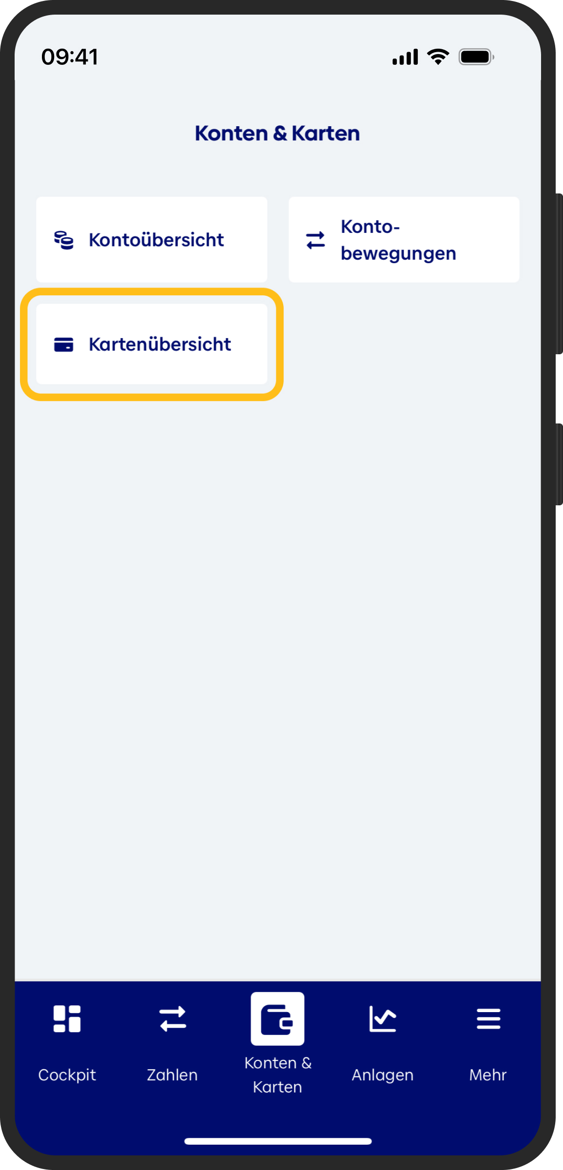 - Tippen Sie in der unteren Navigationsleiste auf Konten & Karten.