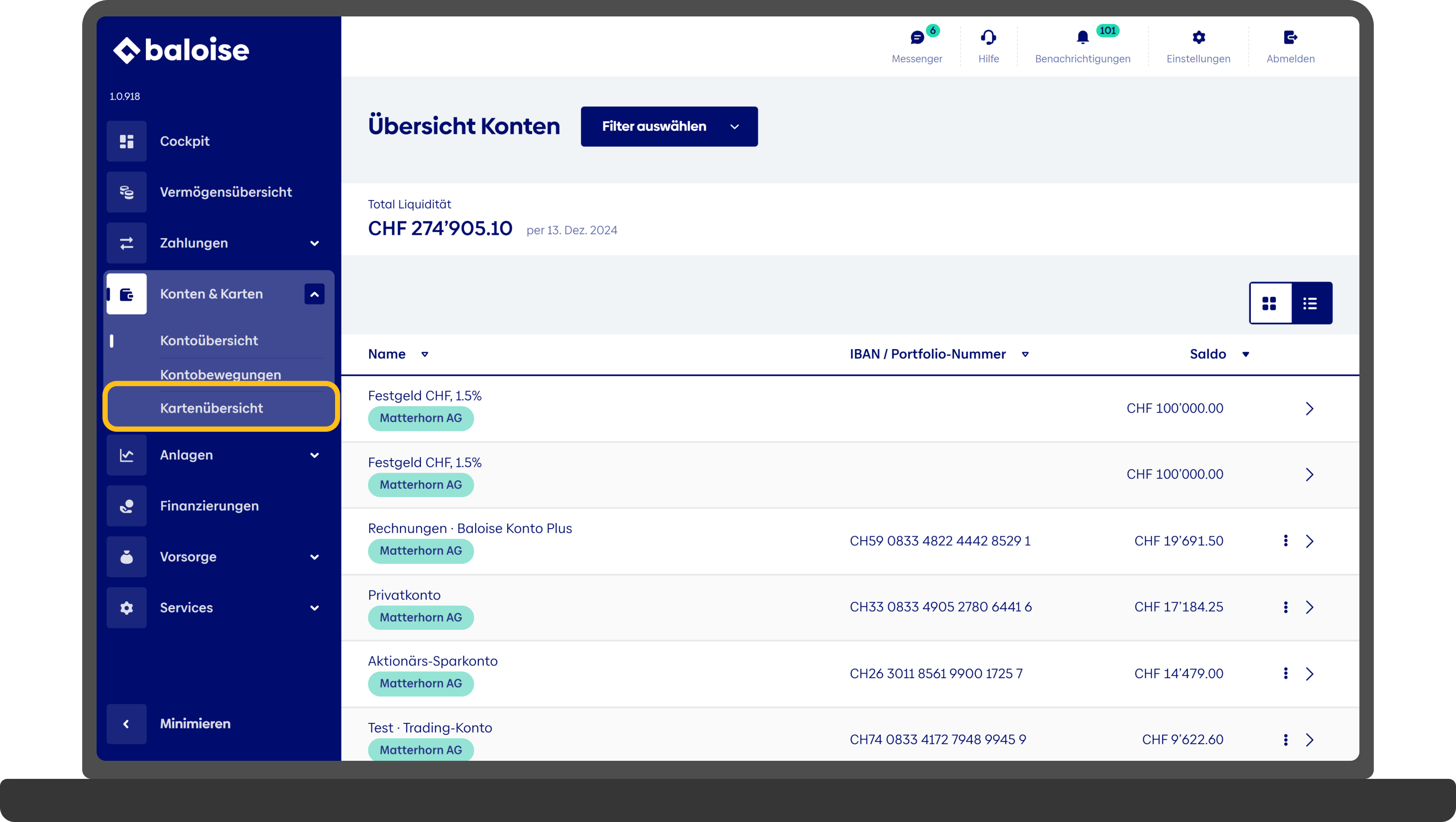 - Wählen Sie in der Seitenleiste Konten & Karten.